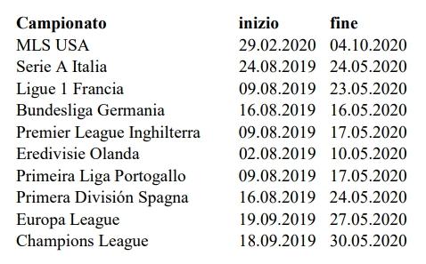 I CAMPIONATI PIU' BELLI DEL MONDO, QUANDO INIZIANO E QUANDO FINISCONO